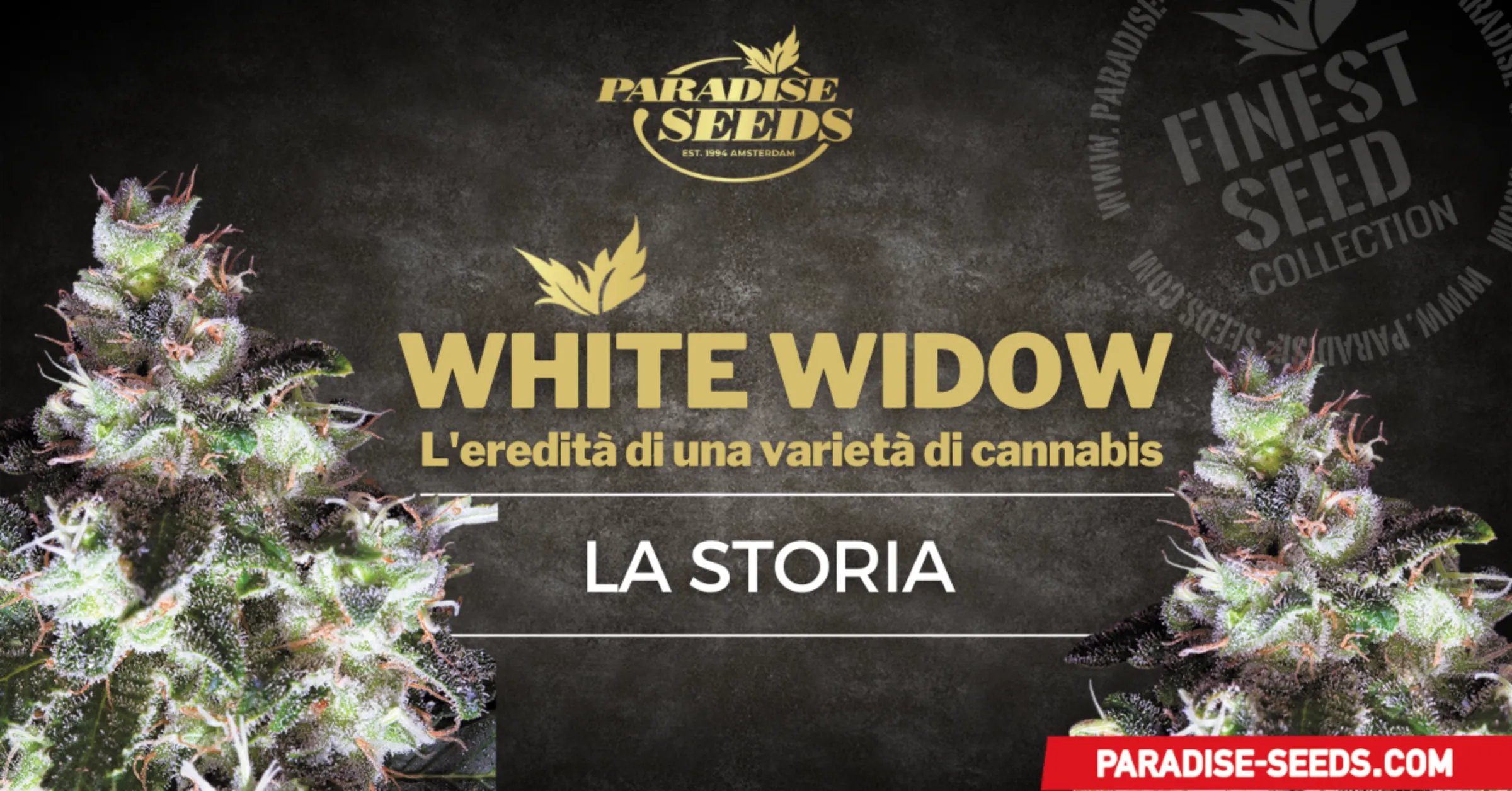 La White Widow è un ibrido 50/50 (50% indica/50% sativa). Dai un’occhiata alla collezione Paradise Seeds e vedrai che puoi acquistare semi di cannabis ‘Original White Widow IBL ’’. Paradise non è l’unica banca di semi a offrire questa varietà di cannabis ereditata, ma la legittimità di questo particolare seme di cannabis può essere riconosciuta dall’etichetta “IBL”. Cosa indica la sigla IBL? Si riferisce a una In-Bred Line, il che significa che l’ascendenza di questa varietà White Widow può essere rintracciata fino alla pianta originale. Paradise ricevette una coppia di piante di White Widow nel 1996 – un clone femmina e uno maschio – dal leggendario breeder di cannabis olandese Ingemar. Questo avvenne appena un anno dopo il lancio sul mercato dei semi di cannabis White Widow, che suscitò grande scalpore nella comunità dei coltivatori di cannabis.