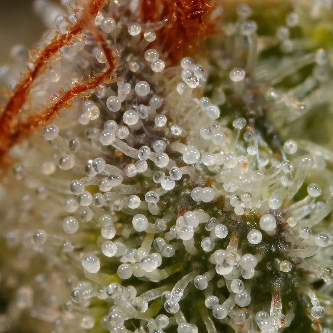 The multiple calyxes of this plant produce thick flower clusters that quickly fill with rock hard big buds that are insanely rich in resin.